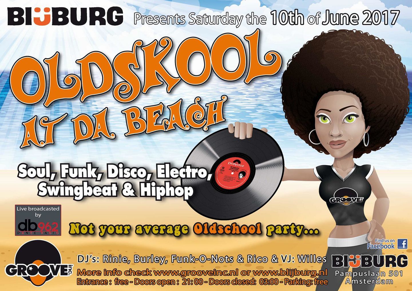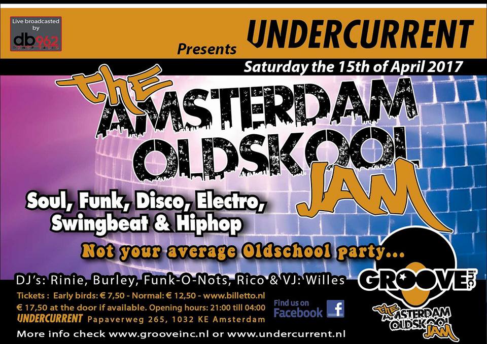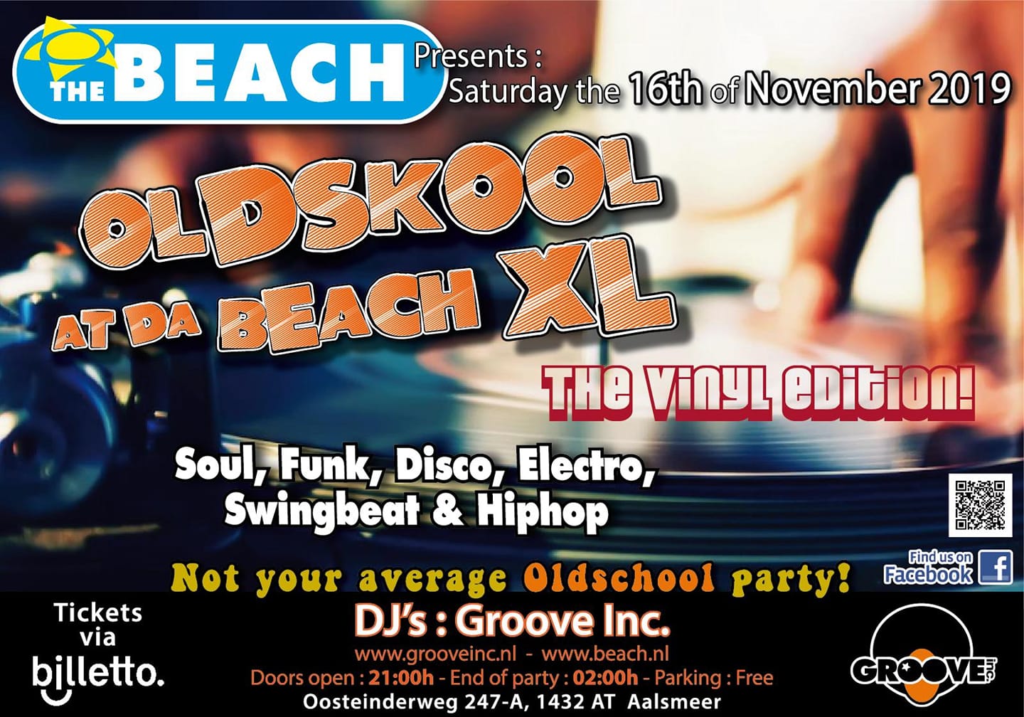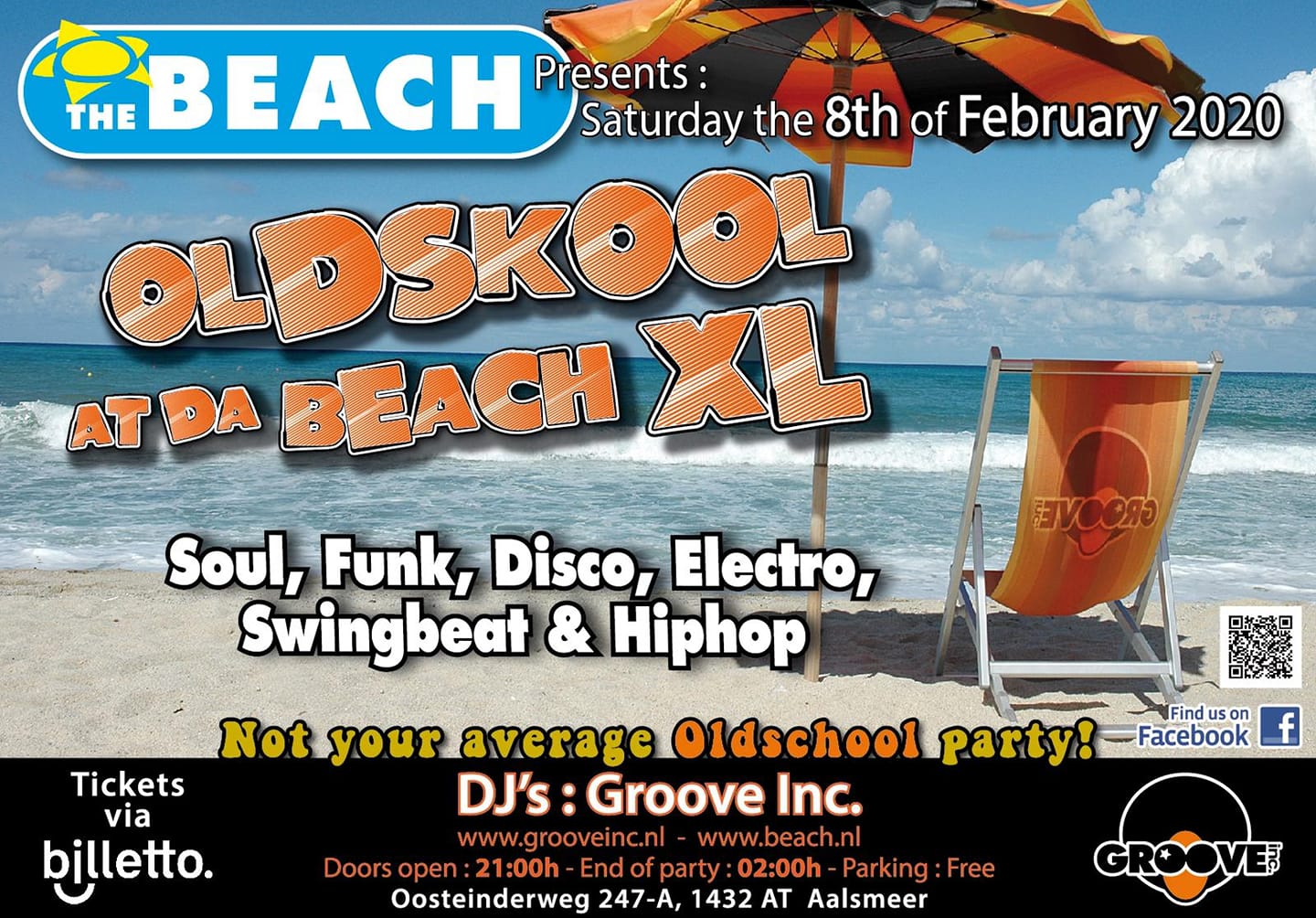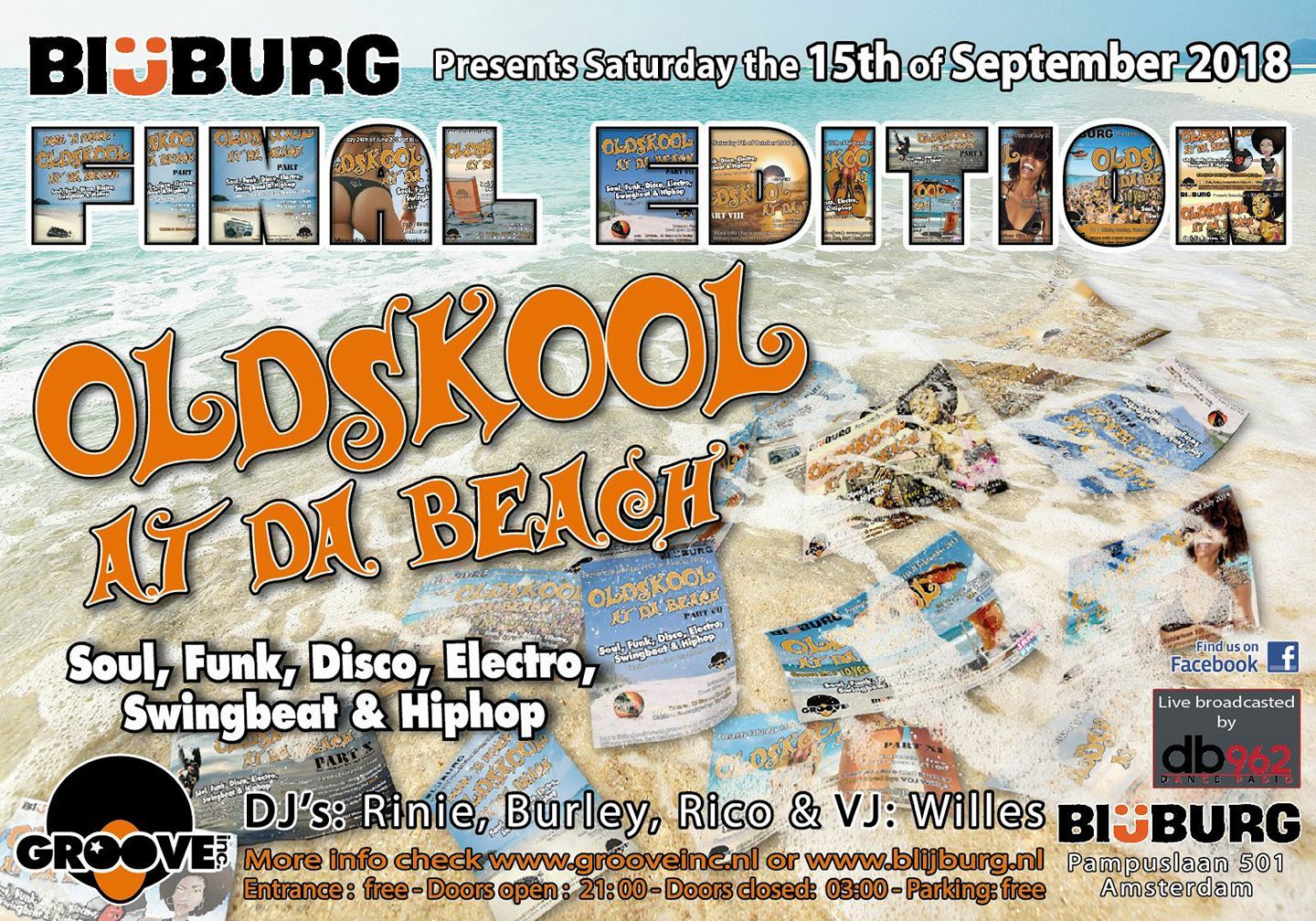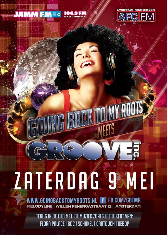 Diverse flyers van Groove Inc. parties van de afgelopen jaren.